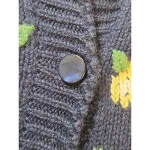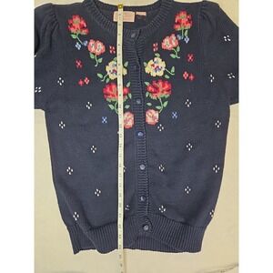 Vintage Knitted Floral Short Sleeve Sweater Cardigan Navy Blue GrannyCore Size S