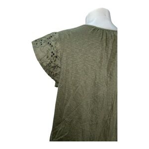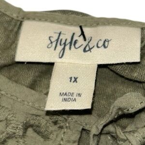 Style and Co Green Olive Flutter Sleeve women’s Blouse with Tie Front Size 1X