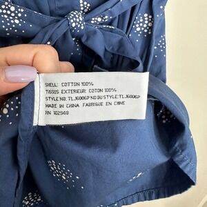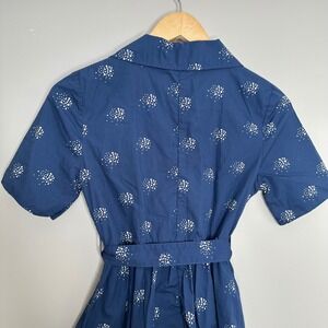 Tullette Women's XS Blue White Dot Print Short Sleeve Button Down Belted Dress