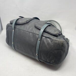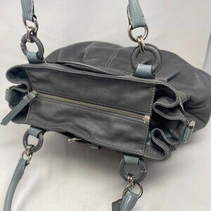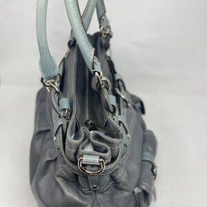 Coach Vintage Satchel | Extra Large Grey Leather Purse | Exotic Teal Accent Hand