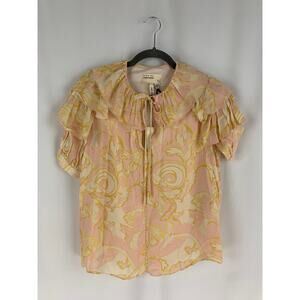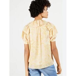 Ted Baker Frisis MIB Frill Printed Top Light Yellow Womens Size 2 Ted Size 0