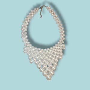 Vintage Rmn Faux Pearl Beaded Collar Bib Statement Necklace