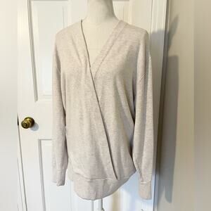 Cozy and cute faux wrap sweatshirt. Oatmeal color.