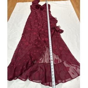 Lulus Womens XS Forever Be Burgundy Floral Jacquard Ruffles Maxi Dress Cocktail