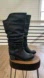 NWT 8 Black, vegan faux leather double buckle block heel knee-high boots
