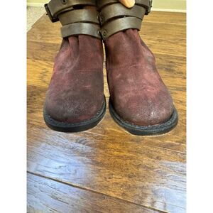 FREEBIRD Blaze Leather/Suede Strappy Booties, Wine, Sz 8