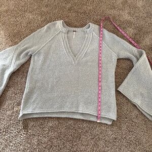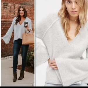 Free People Lovely Lines Bell Sleeve Sweater in Grey size Medium Oversized