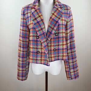 Elevate your style with this vibrant multicolour plaid blazer. Perfect for adding a pop of colour to any outfit.