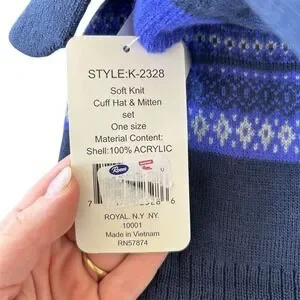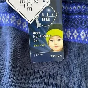 This NWT unbranded boys' blue winter hat and mitten set in size 2-4 is a practical and stylish accessory set for young boys. Made from acrylic material, this 2-piece set includes a hat and mittens in a classic blue color, perfect for keeping kids warm during the winter months. With pattern detailing, this set adds a fun touch to kids' outfits while providing them with the necessary protection from the cold. Made in Vietnam, this set is one size and suitable for boys in the specified size range.