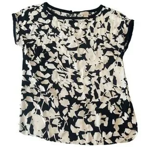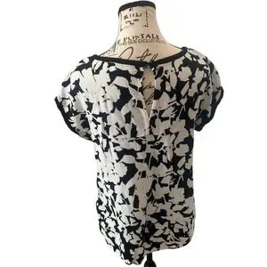 Kate Spade New York Black White Floral Print Short Sleeve Top Women's Size 4