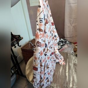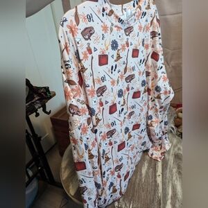 This Harry Potter pajama shirt from Lain Ryan Designs is perfect for cozy nights or lounging around. With a fun Harry Potter-themed print, it's both stylish and comfy. Although the tag reads Medium, it has an oversized fit that would work well for those who love a relaxed look.