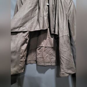 Vince Brown Leather Wool Cotton Blend Drape Neck Moto Jacket Sz S