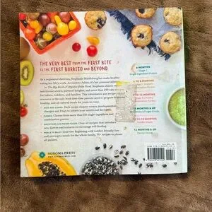 The Big Book of Organic Baby Food by Stephanie Middleberg. Features colorful images of fruits and vegetables.