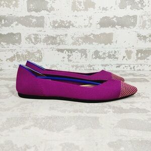 NEW Rothy's The Flat Purple Knit Gold Pointy Toe Slip On Loafers F789