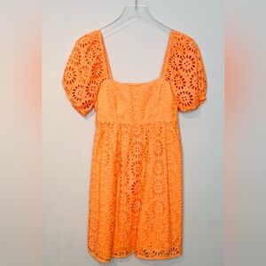 Lilly Pulitzer Kay Babydoll Orange Cantaloupe Tangerine Eyelet Puff Sleeve Dress