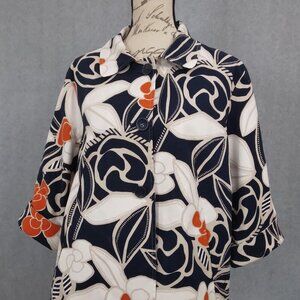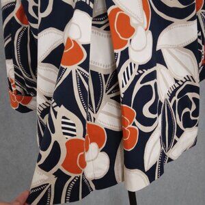 Chico's | Tropical Floral Print Cotton Jacket Navy Orange | Size XL