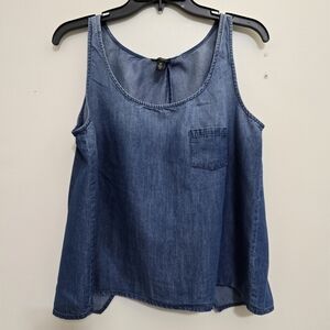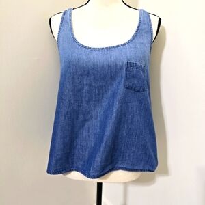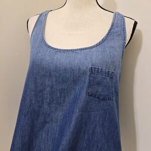JESSICA SIMPSON Medium Sleeveless Denim Split Back Scoop Neck Pocket Tank