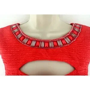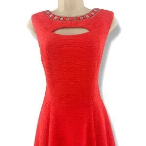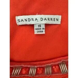 Sandra Darren Orange Coral Beaded Cutout Neckline Fit & Flare Dress Size 14