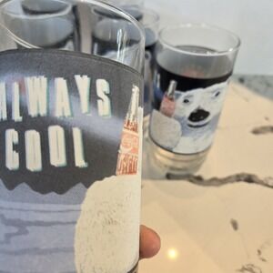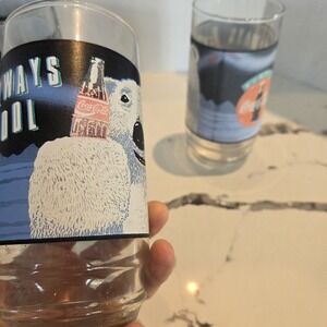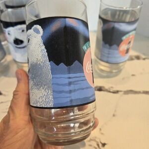 This set of 6 vintage Coca-Cola glasses from 1992 features the iconic polar bear design and is perfect for any collector or fan of the brand. Each glass holds 16 oz of liquid and showcases the classic "Always Cool" slogan. These glasses are original and made in the United States, adding to their value. The multi-color design makes them a great addition to any Coca-Cola collection. These glasses are in good condition and are a great addition to any home bar or display.