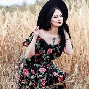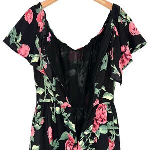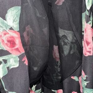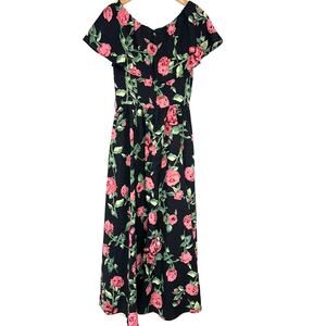 Rebel Love Clothing Pink Black Rose Floral Ruffle Maxi Dress Size Small