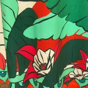 #farmrio #anthropologie #wrapskirt #tropical #botanical #jungle #palmtree #parrot #flowers #peach #pink #blue #orange #elasticwaist #stretchyfabric #resortwear #brunch #travel #vacation #wedding #macaw