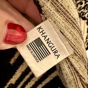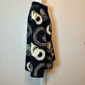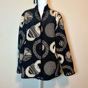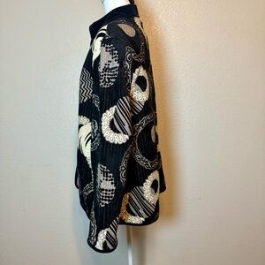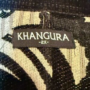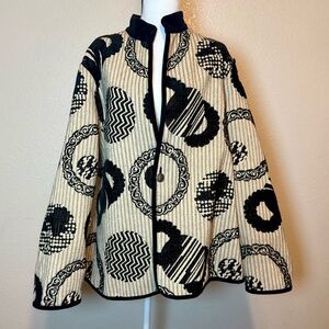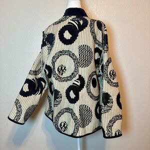 Khangura Reversible Jacket Black & Beige Geo Print Velvet Trim Size 2X