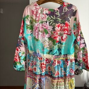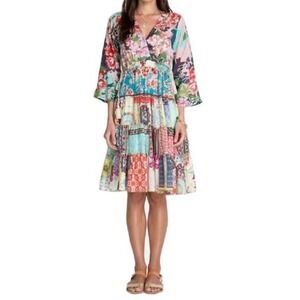 Johnny Was New Medium Gigi Patchwork Dress $398 Patchwork Bohemian Bell Sleeve