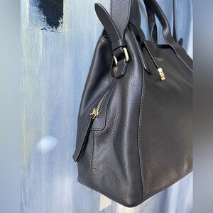 This is the updated Baylis Road, a highly sought-after, versatile Radley London satchel crafted from premium soft-grain black leather. It's the perfect size to take from morning meetings to evening plans, offering both style and superior organization with its signature triple-compartment design. Crafted from soft leather, this multiway bag will pair well with both work and weekend looks. You can choose how you want to wear this design when on the go, with the handy crossbody strap or grab handle to choose from.