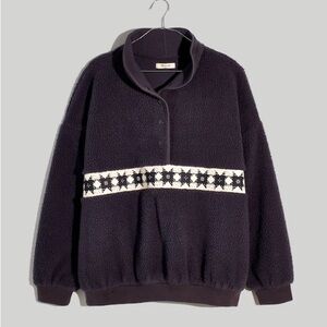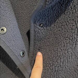This snuggly, relaxed popover is ideal for when it gets a bit chilly outside. Coming in our fluffiest (Re)sourced recycled sherpa, it has a button placket and border-like quilted trim.