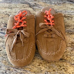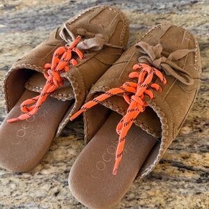 Brown Kids Shoes with Orange Laces Worn once ! Like new Back 70 mules sneakers