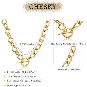 【Chunky Necklace Size】: Paperclip necklace: 17.32 inches, Toggle clasp design, no extension chain. Clavicle chain or short necklace style is suitable for slender neck or elongated neck, suitable for people with neck circumference of 12.59"-14.17"