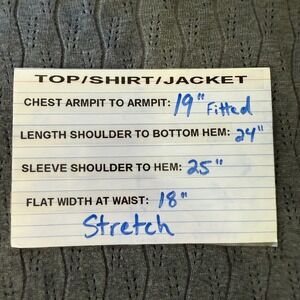 • Chest (Armpit to Armpit): 19" (Fitted)
