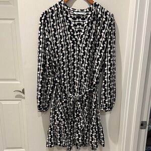 Stylish long sleeve dress with a striking monochrome pattern. Perfect for versatile wear.