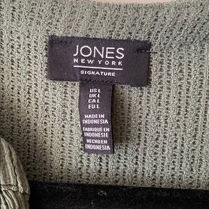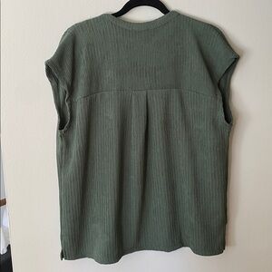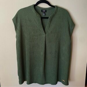 Jones New York Signature V Neck Cap Sleeve Muted Moss Green Blouse Size L