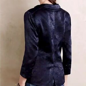 Anthropologie Capulet Revolve Satin Blue Single Button Boyfriend Blazer, Large
