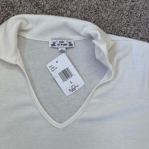 NWT cute cropped shirt. Lightweight and stretchy. Collar and deep v. Y2K inspired. See pics for measurements