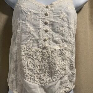 Keywords: American Eagle Outfitters, tank top, embroidered, lace, adjustable strap, cream, small, bohemian, button front, drawstring hem, floral, summer, sleeveless, casual, vintage inspired