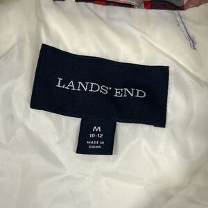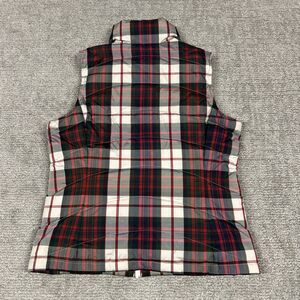 Lands End Vest Womens Medium Plaid Down Filled Puffer Red Full Zip Blue Holiday