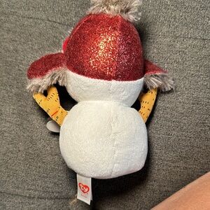 Charming Ty Beanie Boos plush. Features a white body and a brown bow.