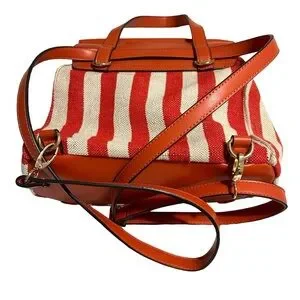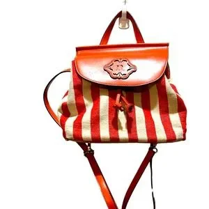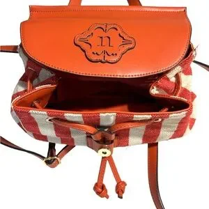 Nanette Lepore Linen Vegan Leather Backpack Red White Classic Preppy Academia