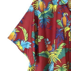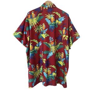 Barefoot Attitude Mens Size 3XL Button Up Shirt Parrot Tropical Red Burgundy