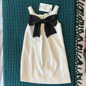 This elegant cream dress features a stylish black bow, perfect for any special occasion. Designed for comfort and style, it's a must-have for your child's wardrobe.