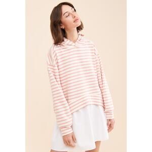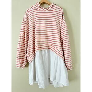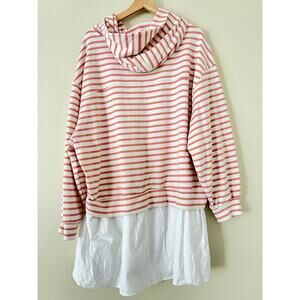 Anthropologie Pilcro Hooded Sweatshirt Twofer Mini Dress Large Pink Stripe