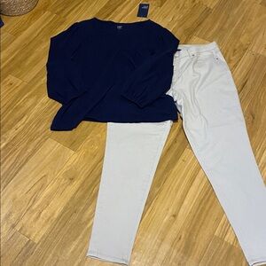 Crown & Ivy Navy Fashion Top NWT & Bandolino size 14 straight leg khakis bundle