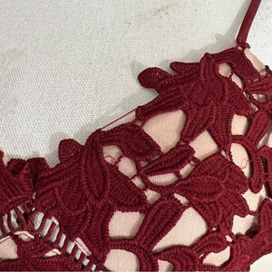 Aqua Red Maroon Lace Dress XS Midi Length Spaghetti Strap V Neck Cocktail Formal