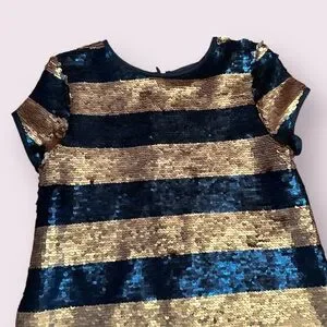 Stunning gold and navy striped sequin dress. Perfect for special occasions.