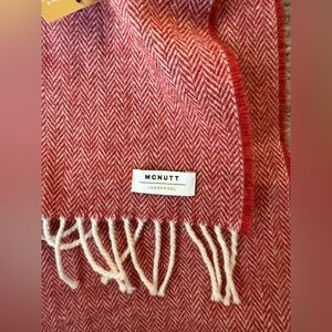 Elegant red herringbone scarf. This is a NWT McNutt of Donegal merino lambswool scarf with a red and white herringbone pattern.
