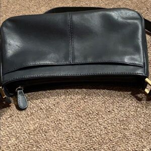 It’s an Etienne Aigner leather handbag. It’s very comfortable for a handbag. Fits perfectly on my shoulder. You can adjust the belt strap for your size. The color of the bag is Navy blue. The bag has some minor scratches on both sides. Please look 👀 at images before purchasing. Comes from smoke free home 🏠.