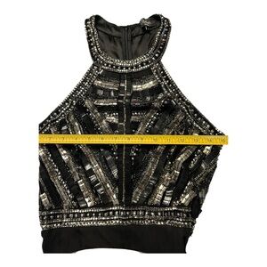 PARKER Elegant Black Beaded Halter Dress Size 2