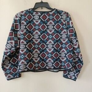 Roamans Jacket Sz 14W Southwestern Tapestry Artsy Aztec Open Boxy Short Jacquard